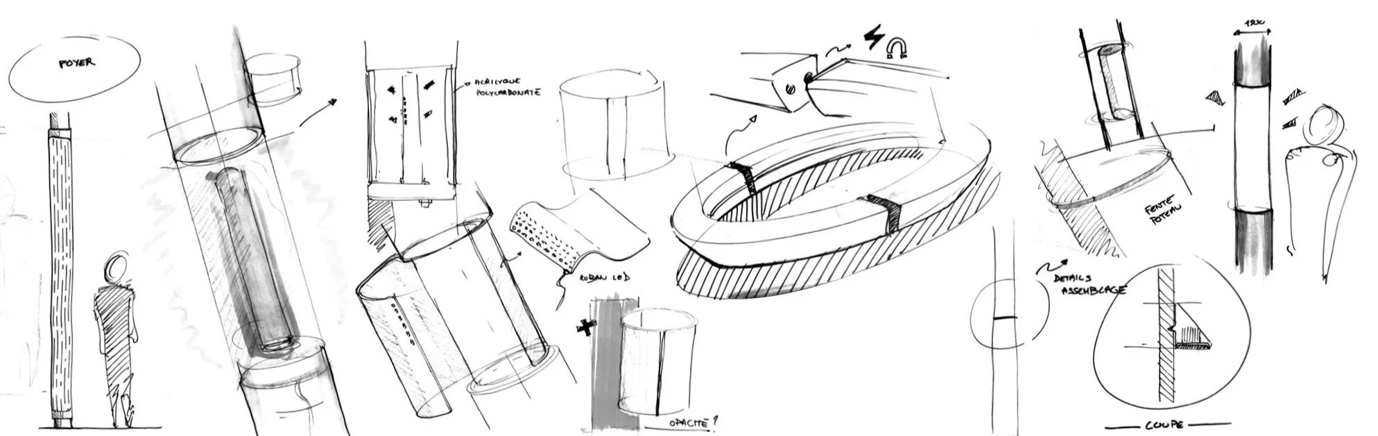 From smallest to biggest configuration, the mast marks the station’s location at all times. Like the flickering of a lighthouse on the horizon, the luminous part at the end increases visibility while informing in the distance of the presence of an imminent bus.